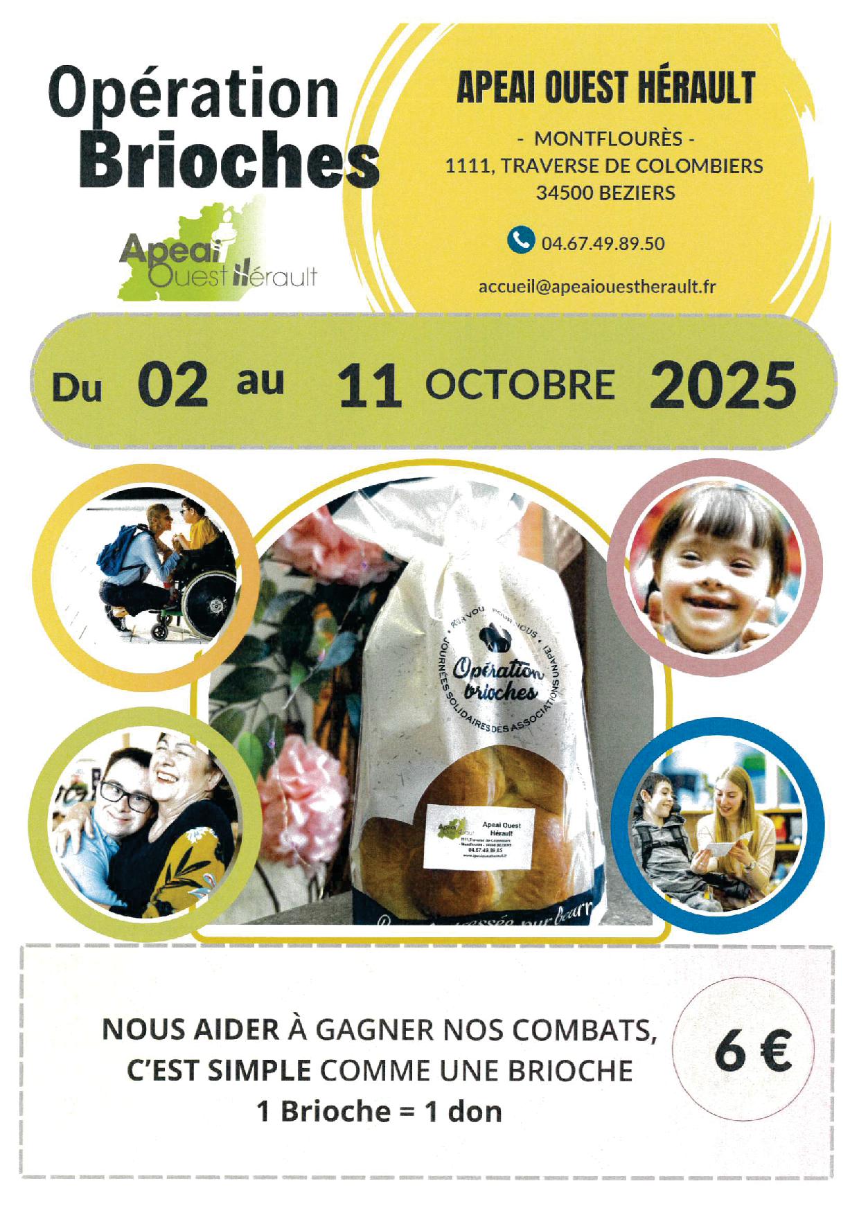 Du 02 au 11 octobre "Opération brioches" au profit de l'APEAI Ouest Hérault.